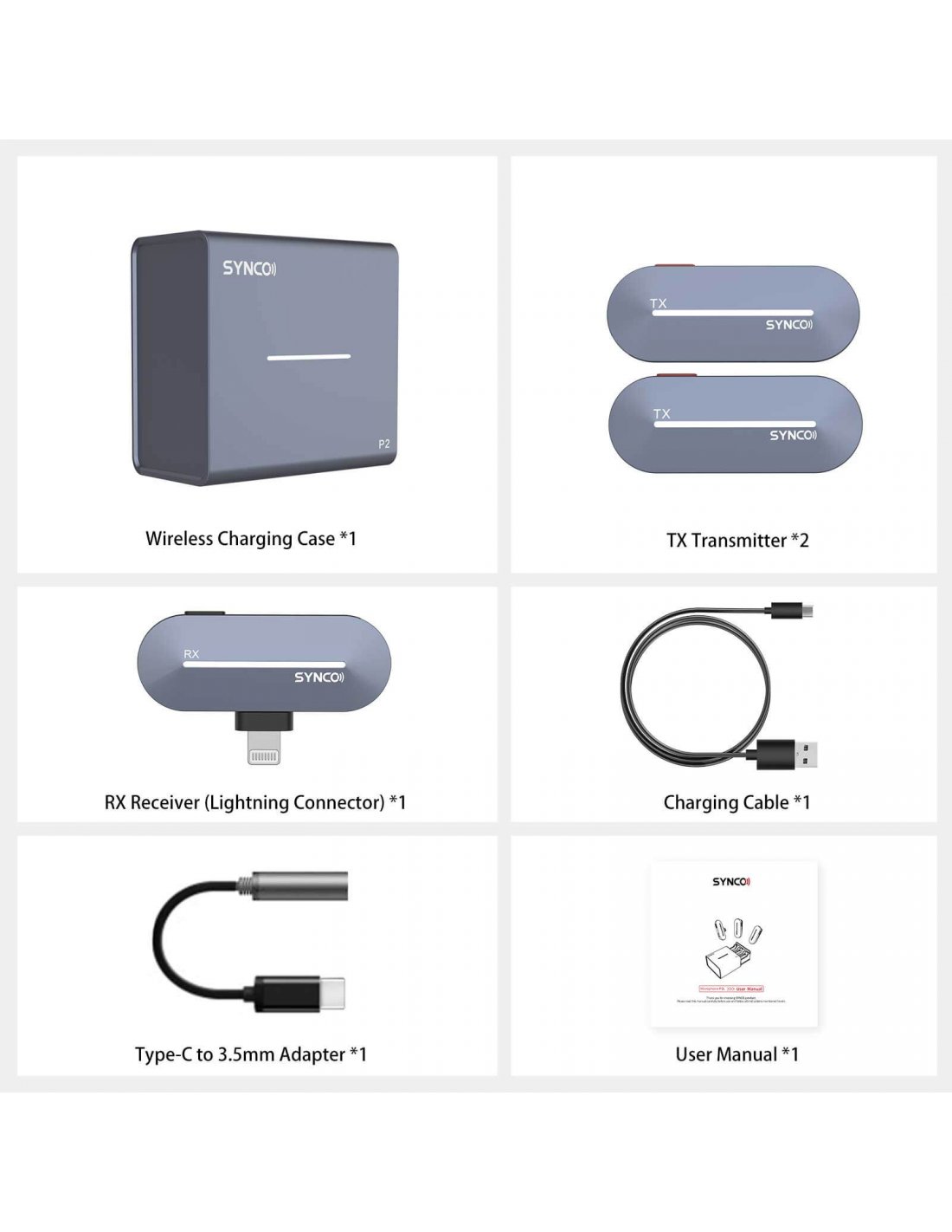 The P2 is a new lineup of dual microphone for phone at SYNCO. It has two models, which separately work for Android phone and iPhone®. Two transmitters and a dual-channel receiver enable it to record in a stereo mode. The fast pairing, strong signal transmission, long battery life of 15 hours (at most) provide excellent recording, making it a great mobile solution to two-person vlog, podcast, and live streaming.